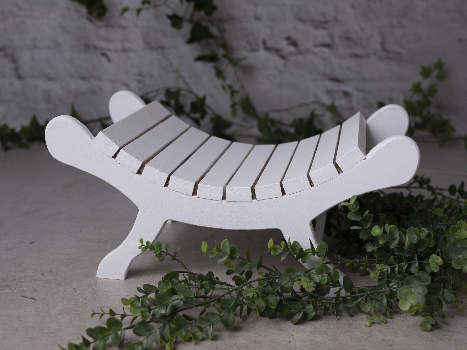 Con su suave curvatura y su acabado artesanal, este banco ofrece un escenario perfecto para sesiones tanto en estudio como en exteriores, añadiendo un toque de encanto y sofisticación a cada fotografía. Su diseño curvo suaviza las líneas y agrega un aura de dulzura, ideal para crear imágenes llenas de ternura y calidez.