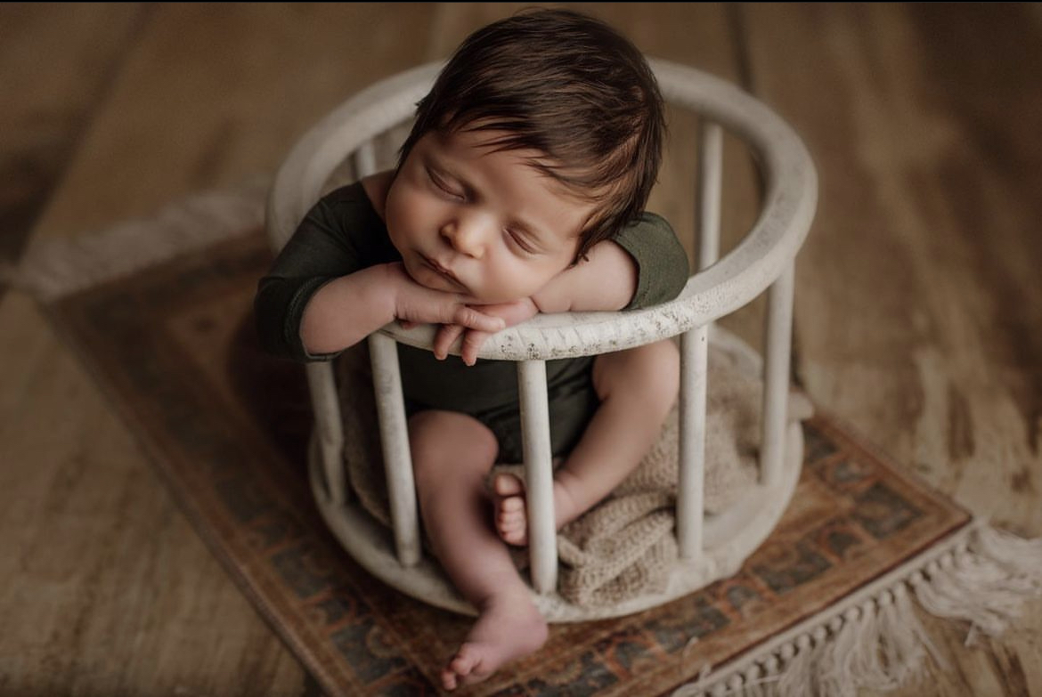 Cuna redonda de madera maciza , realizada a mano desde cero , personalizable en colores , perfecta para sesiones newborn y sitter