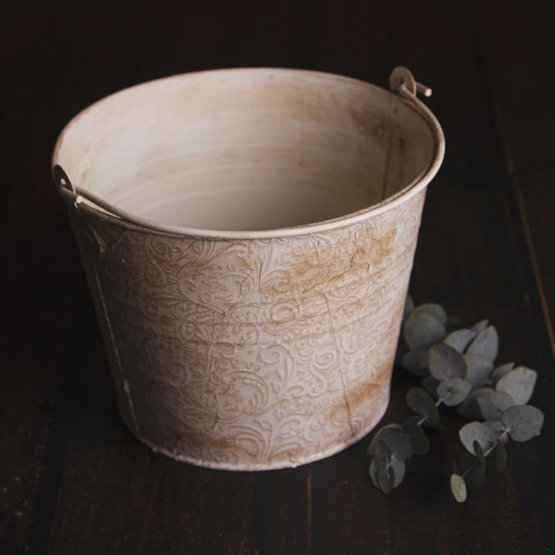 Cubo metálico con motivos , el cual lo podéis utilizar para sesiones newborn(tamaño perfecto) o como atrezzo para cualquier otro tipo de sesión