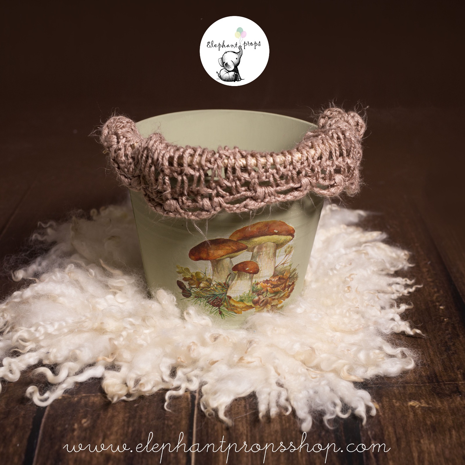 Cubo metalico pintado a mano con productos al agua , siempre elementos seguros para que podáis trabajar sin riesgo. Lo podéis utilizar para multitud de sesiones : Newborn , mini sesiones , bebes.