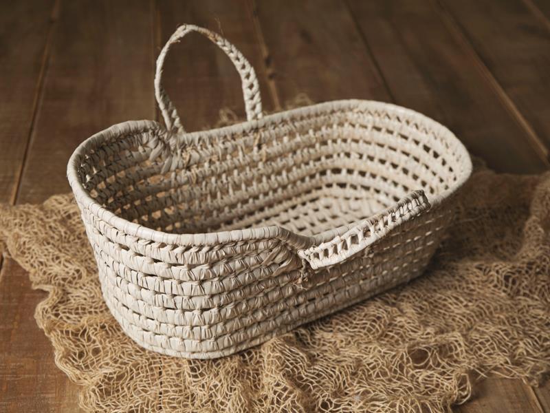 cesto mimbre , tejido a mano , color marfil
