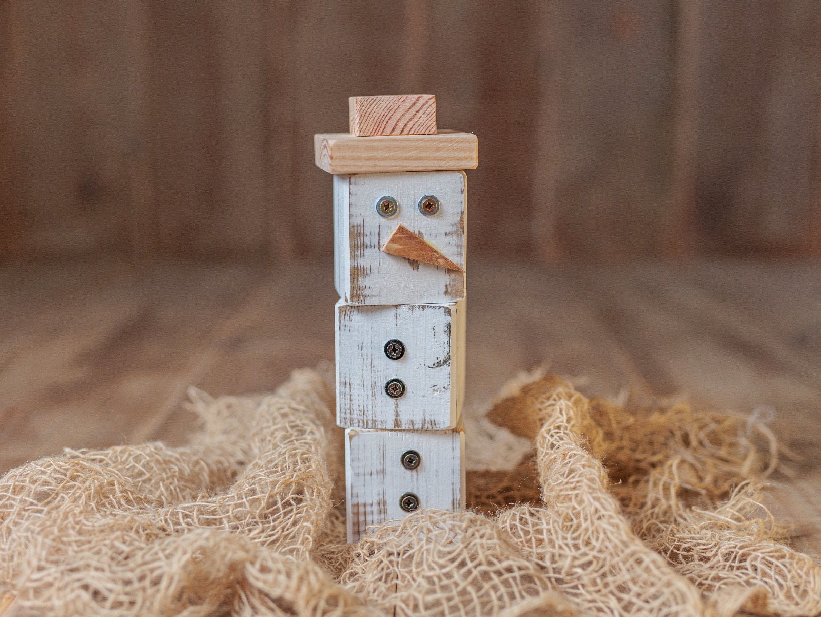Muñeco de Nieve de Madera – Encanto Industrial para tus Sesiones