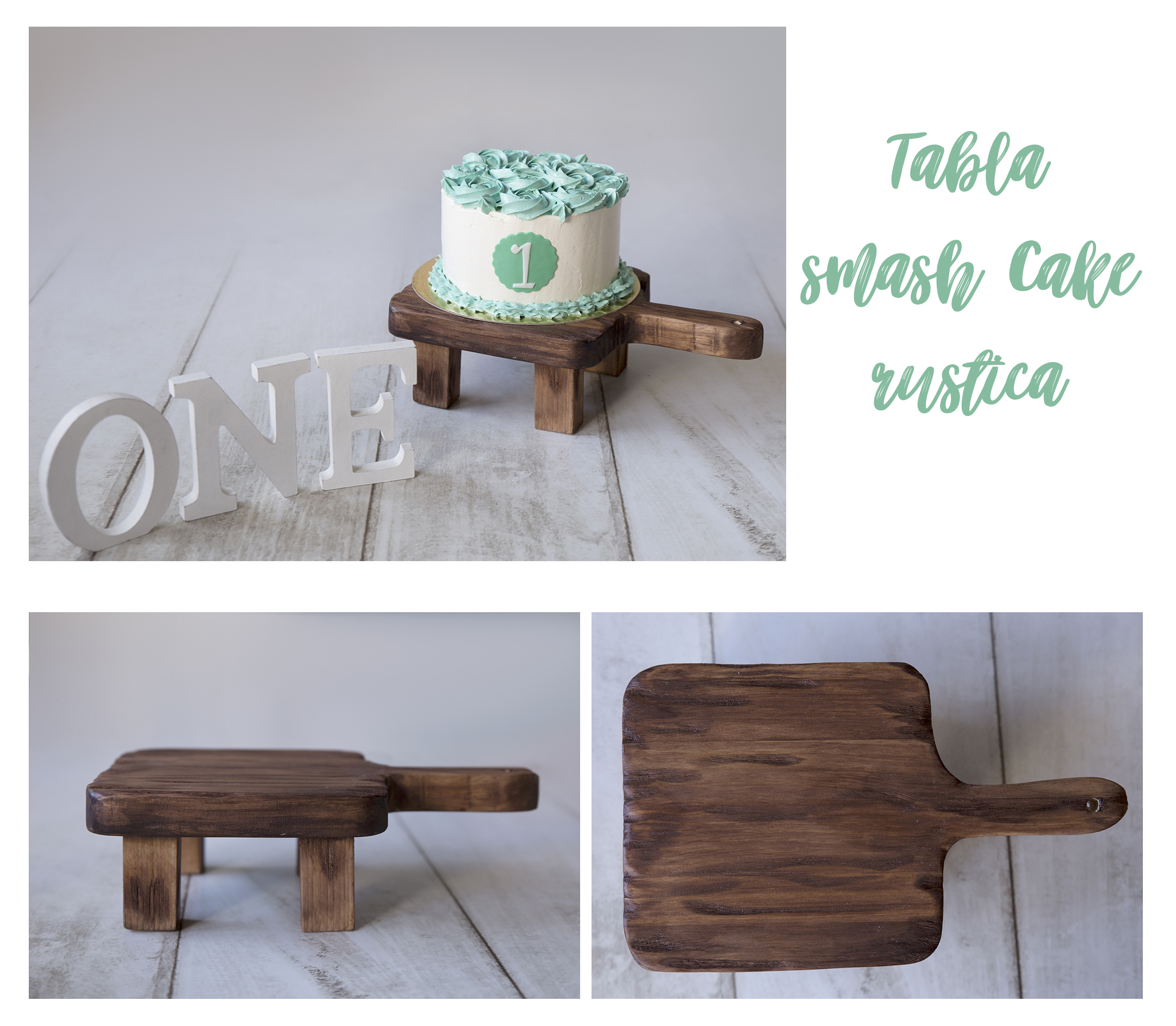 Tabla rustica hecha a mano con materiales naturales y pintada a mano con productos al agua , siempre elementos seguros para que podáis trabajar seguro. La podéis utilizar para sesiones de smash cake como sesiones de new born.