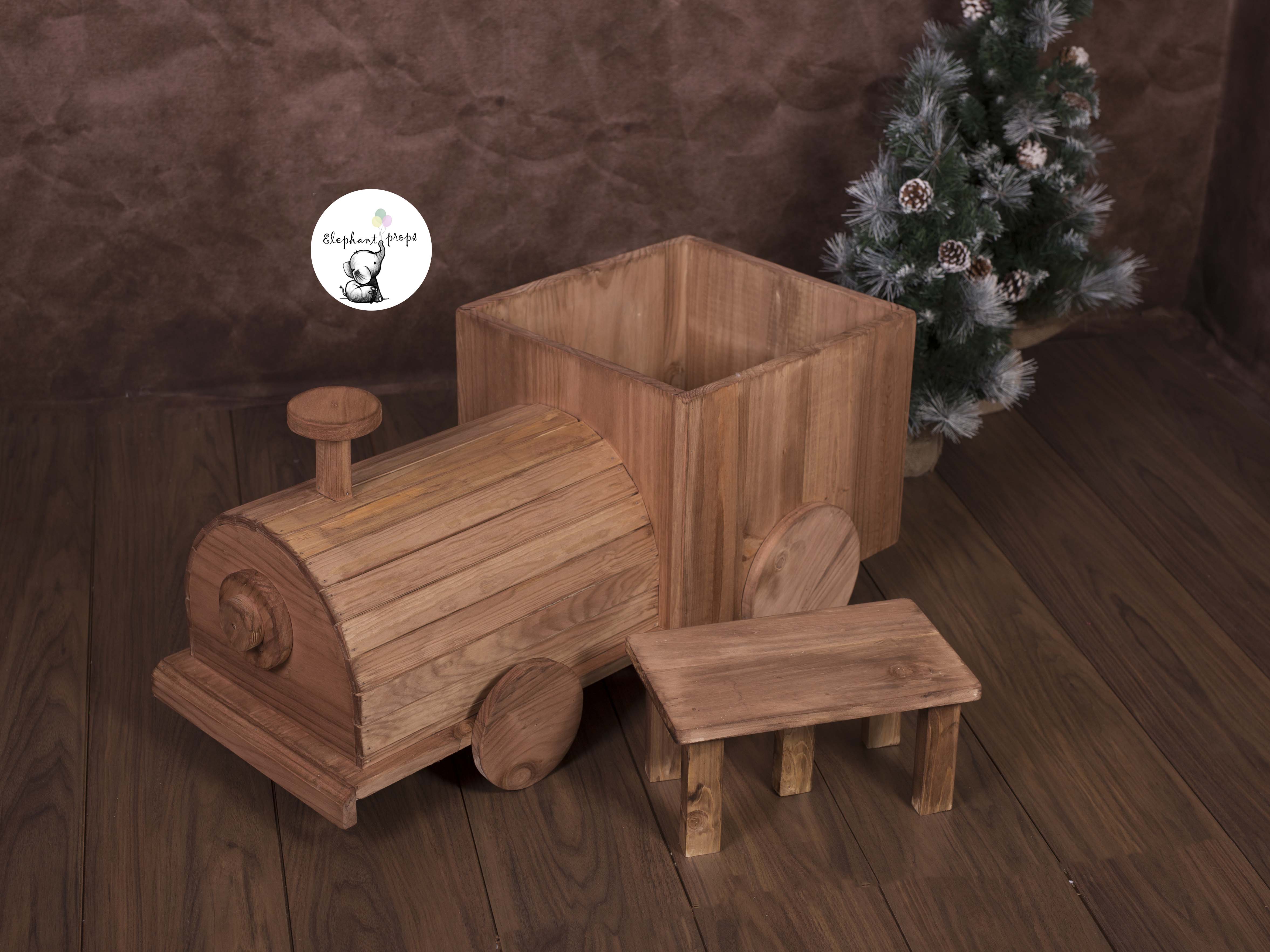 Tren infantil + banquito hecho a mano con materiales naturales y pintada a mano con productos al agua , siempre elementos seguros para que podáis trabajar sin riesgo. Lo podéis utilizar para multitud de sesiones : mini sesiones , navidad etc..